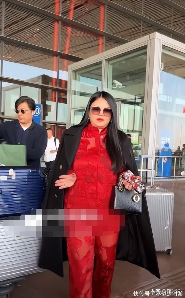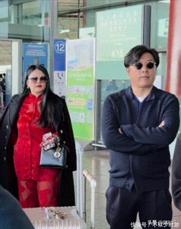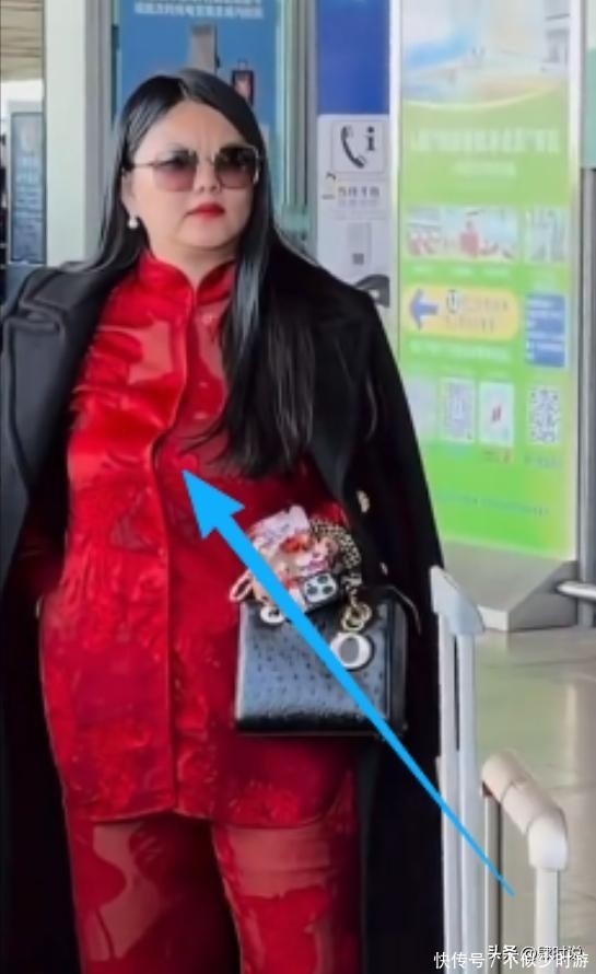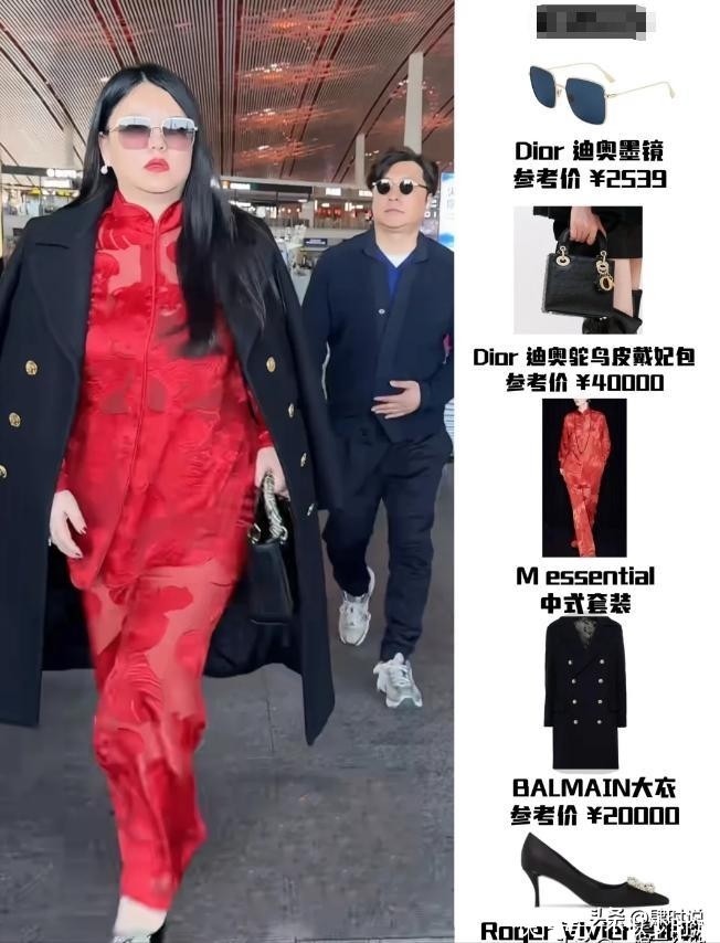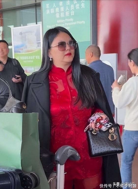 当天在航站楼内,李湘甫一露面便吸引了周围目光。她身穿一套亮眼的红色新中式套装,面料光泽柔和,触感仿佛能透过画面传递出来。领口与袖口点缀着细腻的传统刺绣纹样,工艺考究;外搭一件剪裁利落的黑色呢子大衣,线条挺拔,彰显高级质感。