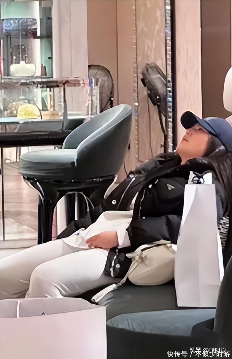 她的步伐也不如以往轻盈,踩着高跟鞋走路时脚步偏沉,步幅较小,途中还曾扶了一下身旁助理的手臂借力前行,似乎因体型原因带来一定行动负担。
