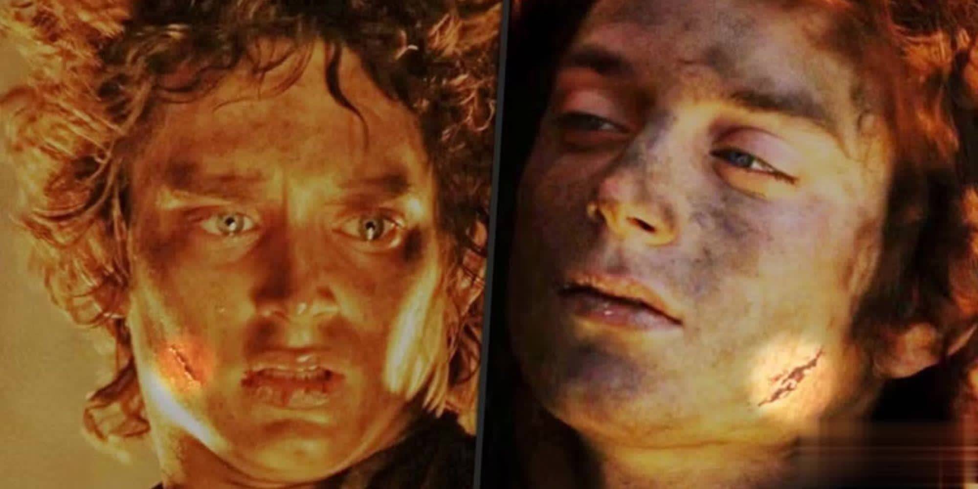《王者归来》最后在末日火山那段,弗罗多脸上被咕噜抓的疤痕居然换了一边脸。